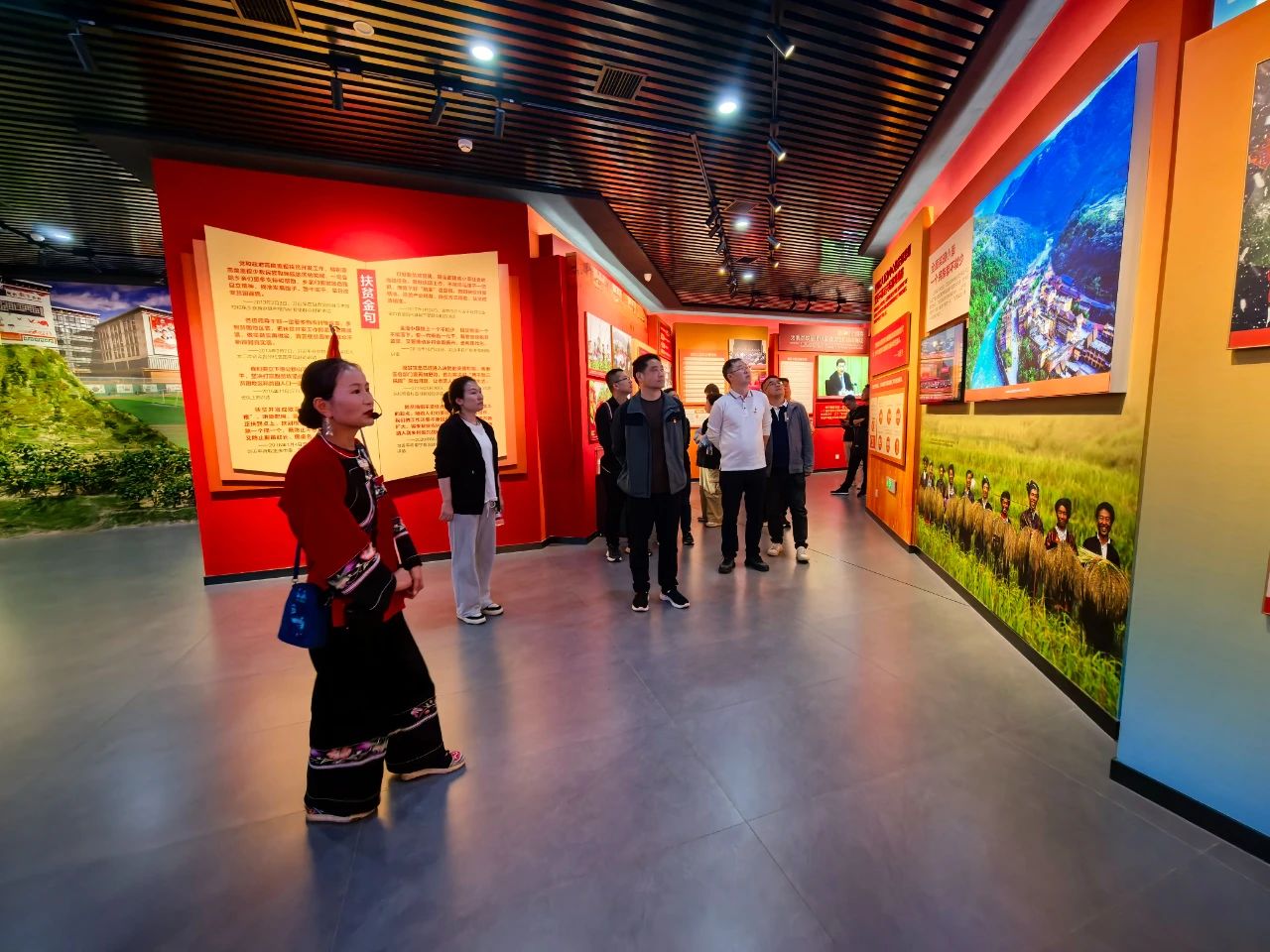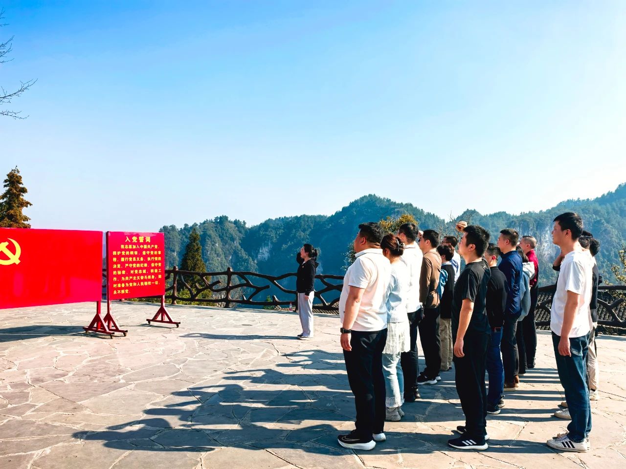 隨后,大家在講解員的帶領(lǐng)下,參觀了精準扶貧主題陳列館,重走習(xí)近平總書記考察路線,還參觀了苗繡非遺扶貧工坊等標志性場所,親身感受了十八洞村在黨的關(guān)懷下,從貧窮落后小山村到脫貧攻堅樣板村的美麗蛻變。最后,全體黨員在精準扶貧廣場重溫入黨誓詞,鏗鏘有力的誓言在美麗的山谷回蕩,傳遞著全體黨員們“聽黨話、跟黨走”的堅定信念。